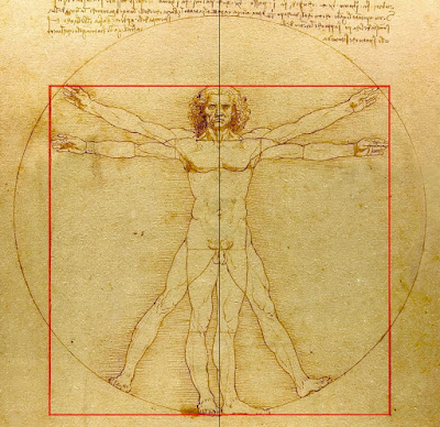 The Homo ad quadratum designed by Vitruvius is composed of simple fractions, and Da Vinci is nothing else but a very accomplished student of the great man. Simple fractions, that's all! (so far)